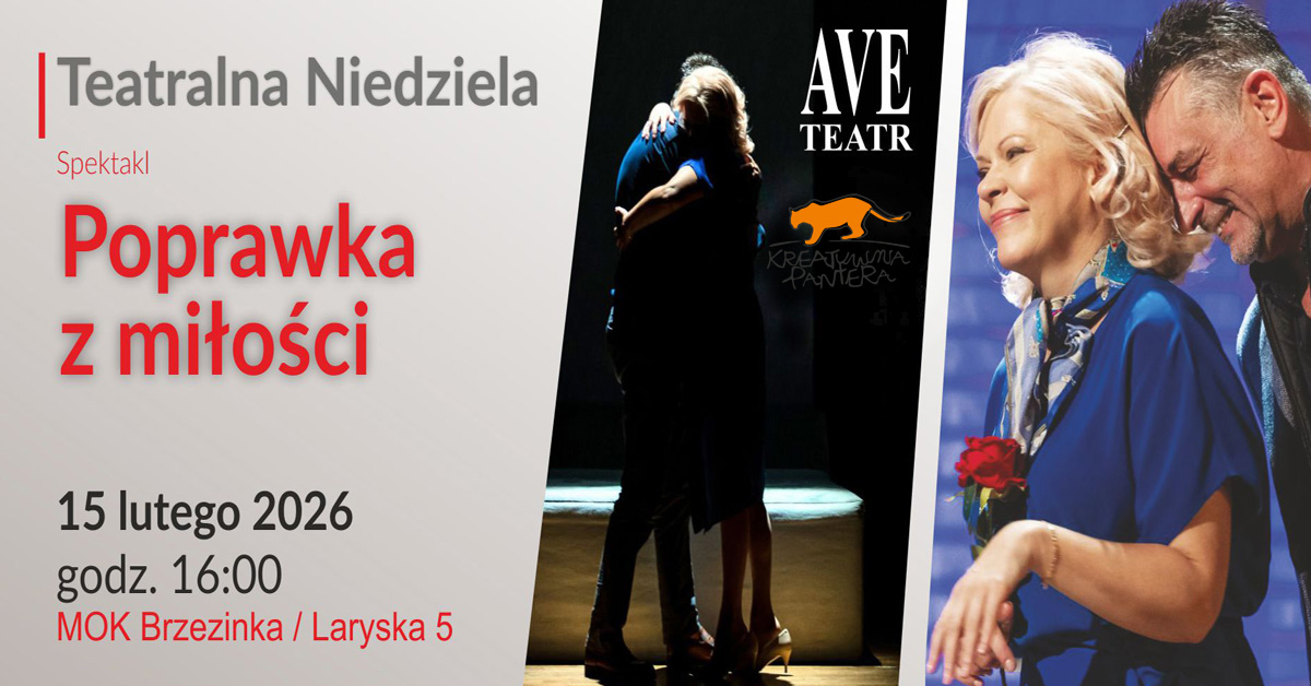 Mysłowicki Ośrodek Kultury ponownie zaprasza na uwielbiany cykl Teatralna Niedziela! Już 15 lutego 2026 r. o godz. 16:00 na scenie MOK Brzezinka zobaczymy wyjątkowy spektakl romantyczny w wykonaniu Ave Teatr.